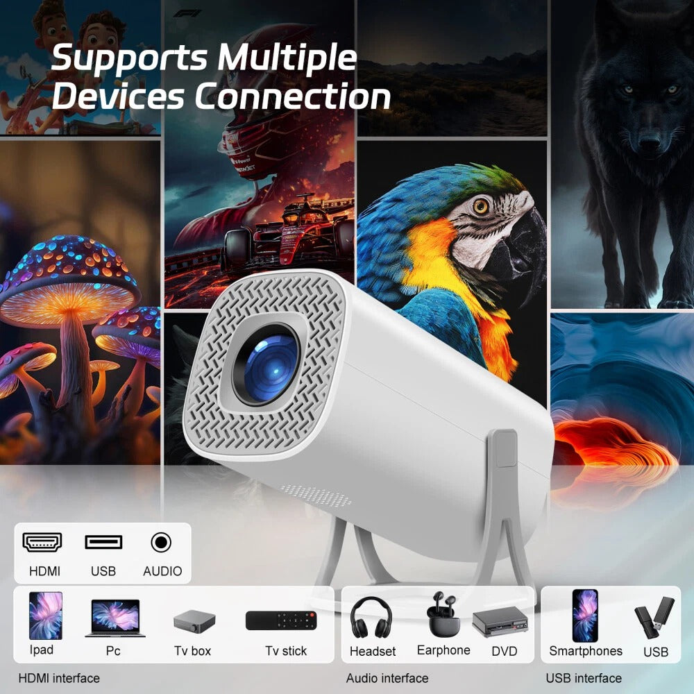 Smart Portable Projector 5G 4K Support | Android 11.0, WiFi 6, Bluetooth 5.0 | 180° Rotatable Mini Home Cinema & Outdoor Movie Projector (130" Display)